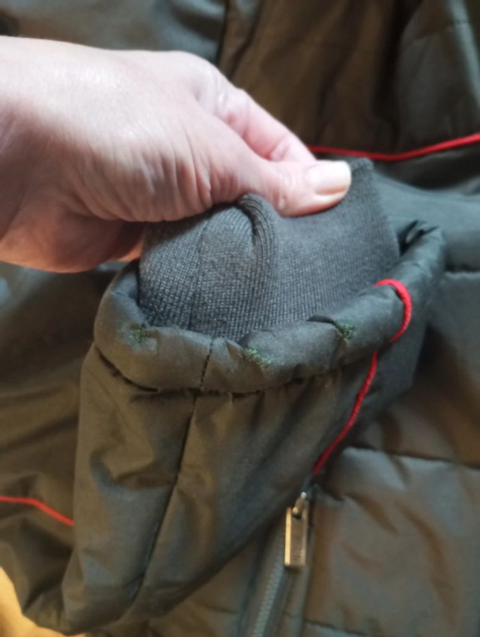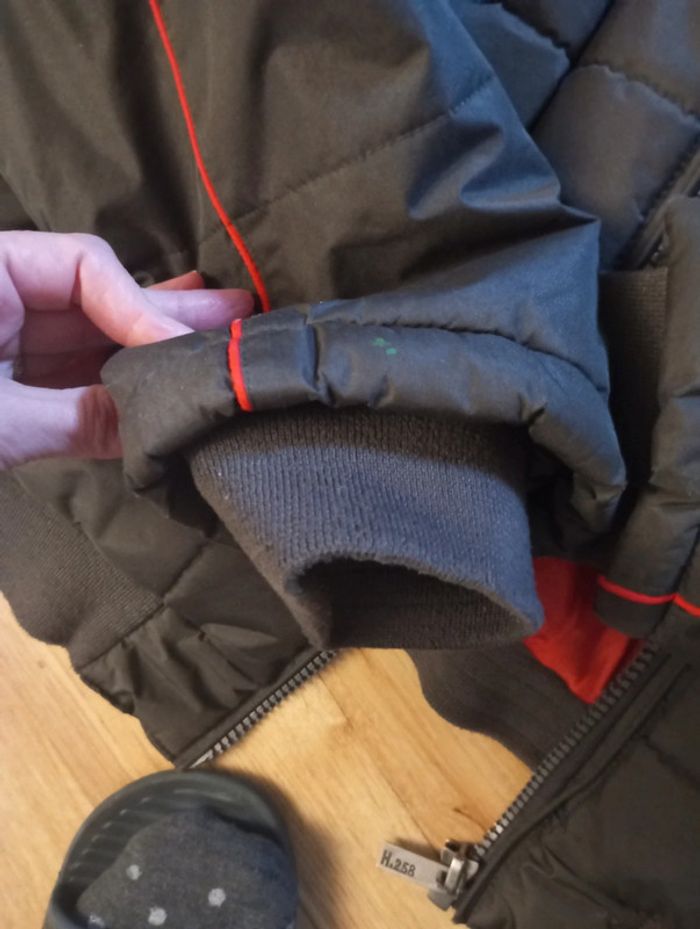 Porté quelques fois. Capuche amovible. Quelques petits accros recousus sur la manche ( très discret voir photo)