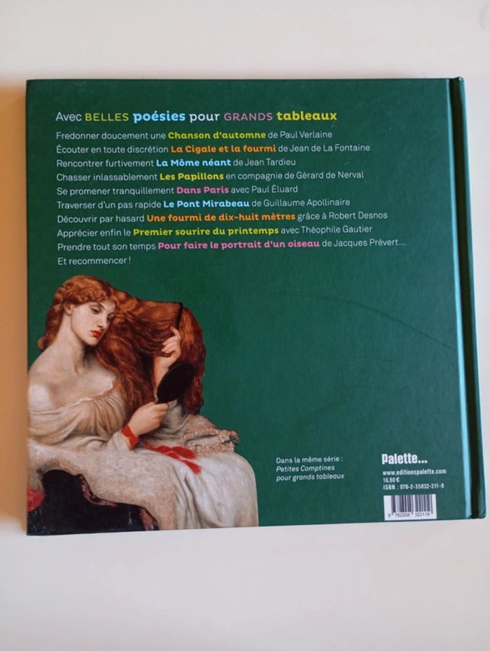 20 poésies illustrées par 20 tableaux, pour une première découverte de la poésie en mots et en images. Éditeur ‏ : ‎ Palette 48 pages Âge de lecture ‏ : ‎ 6 - 9 ans Dimensions ‏ : ‎ 22.7 x 1.3 x 22.6 cm Livre en très bon état Je vends d'autres livres sur l'art #phil_peg_art #poésie #art