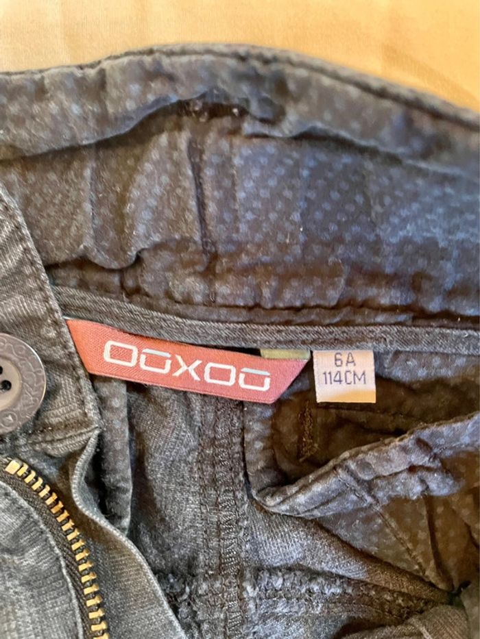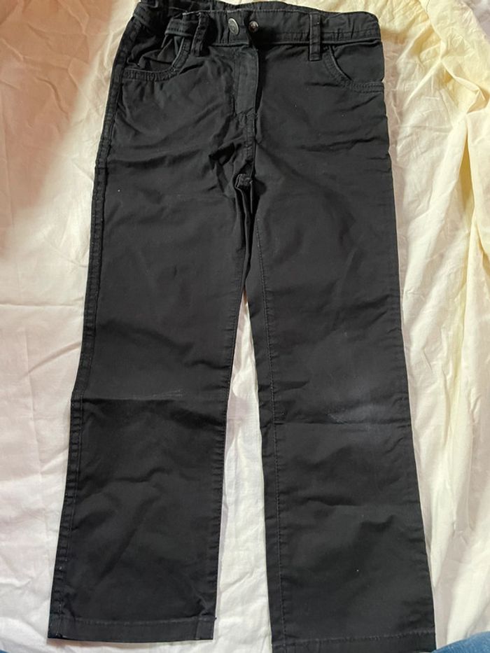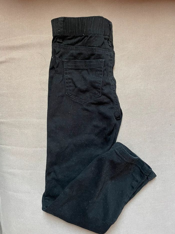 Le jean gris a une étiquette 7 ans, mais vu la longueur, c’est plutôt du 6 ans. Il manque le dernier pantalon noir et le dernier jean sur la photo d’ensemble. Je les ai retrouvés après.
