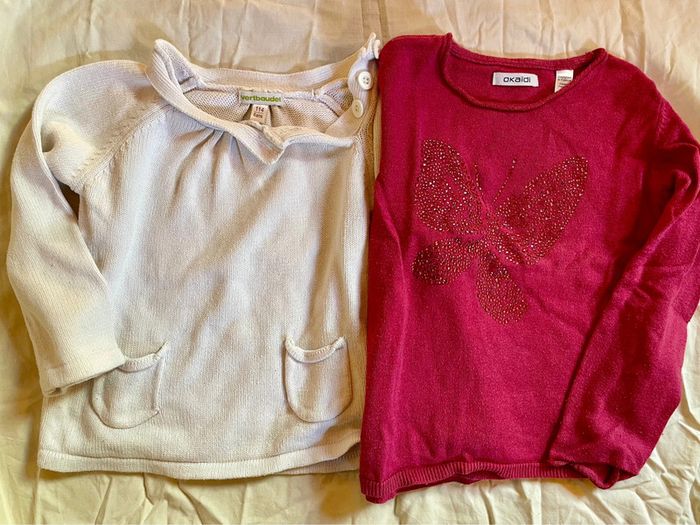 Le okaidi avec le cœur a des sequins réversibles, et quelques peluches sur la manche (cf photo)