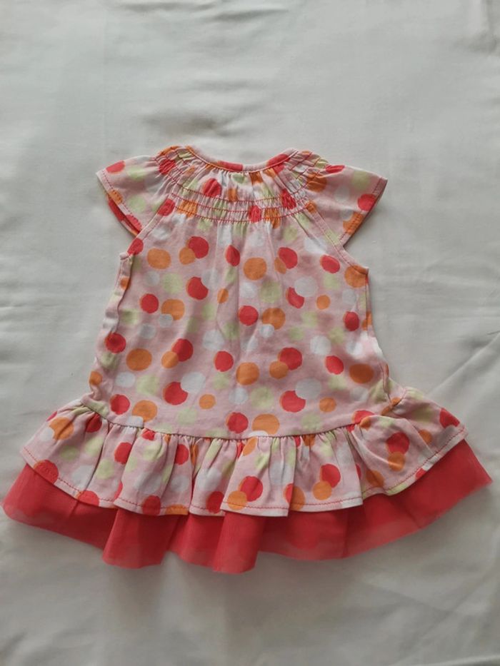 Robe été en 6 mois. Orange clair avec motif pois Ouverture par 5 boutons sur le devant. En très bon état. #emilie77127fille6mois