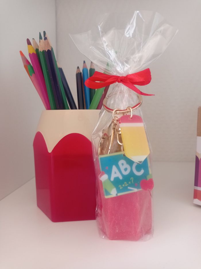 Merci Maîtresse , Atsem!" mais en version stylée ! Fini la trousse et les fleurs vues et revues... Offre un crayon pas comme les autres : un crayon-bougie en cire végétale, parfumé au doux parfum de Grasse, accompagné de son porte-clés trop chou ! Cadeau parfait de fin d’année scolaire pour maîtresse, ATSEM, nounou ou prof préféré ! Et cerise sur le gâteau ajoute une étiquette personnalisé 🙃 Fabriqué avec soin en Alsace, et avec beaucoup d’amour (et un soupçon de magie).