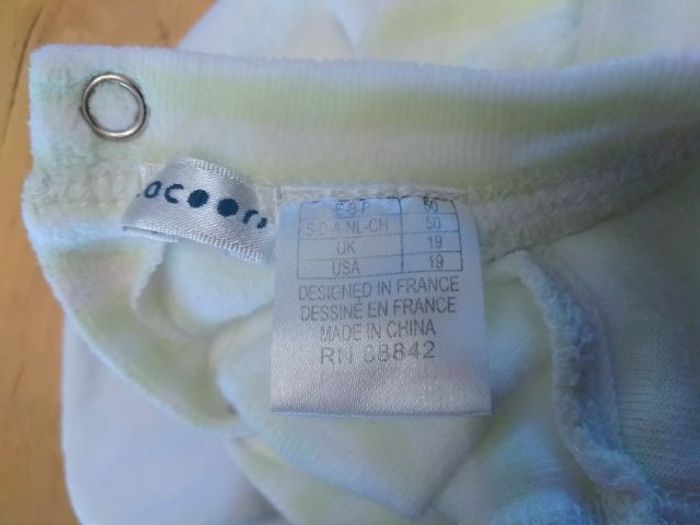 Pyjama vert et blanc à rayures avec ours pression à l'arrière avec pattes naissance 50cm 75% coton 25% polyester mixte - fille - garçon 📸Pour davantage d’informations ou de photos n'hésitez pas à me contacter.