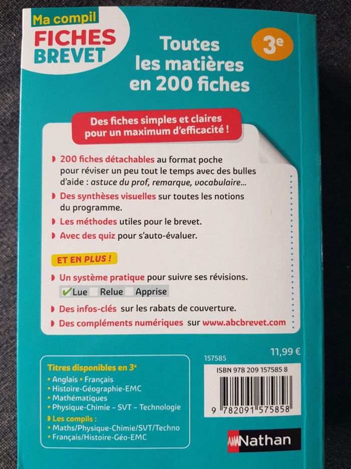 Livre Neuf : Acheté pour mon fils mais il n'y a pas touché 🤦‍♀️ Livraison soignée et réduction sur les lots 👍 #naesahlivres École collège brevet DNB examens français 3ieme maths mathématiques histoire géographie emc physique chimie svt technologie edition Nathan beuf petit prix épreuves scolaires ecole scolarité ados