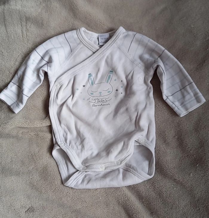 Taille 1 mois, 54 cm Motif lapin, ouverture en cache cœur.