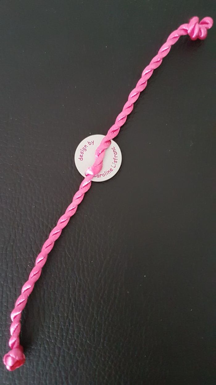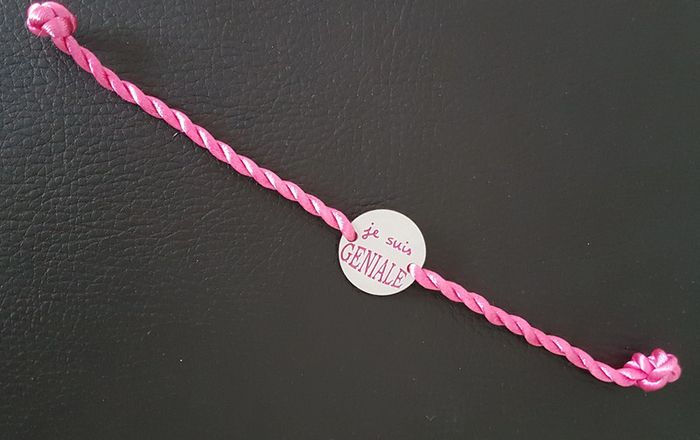 Bracelet avec corde rose et plaque "Je suis géniale" tout neuf, longueur 17cm.
