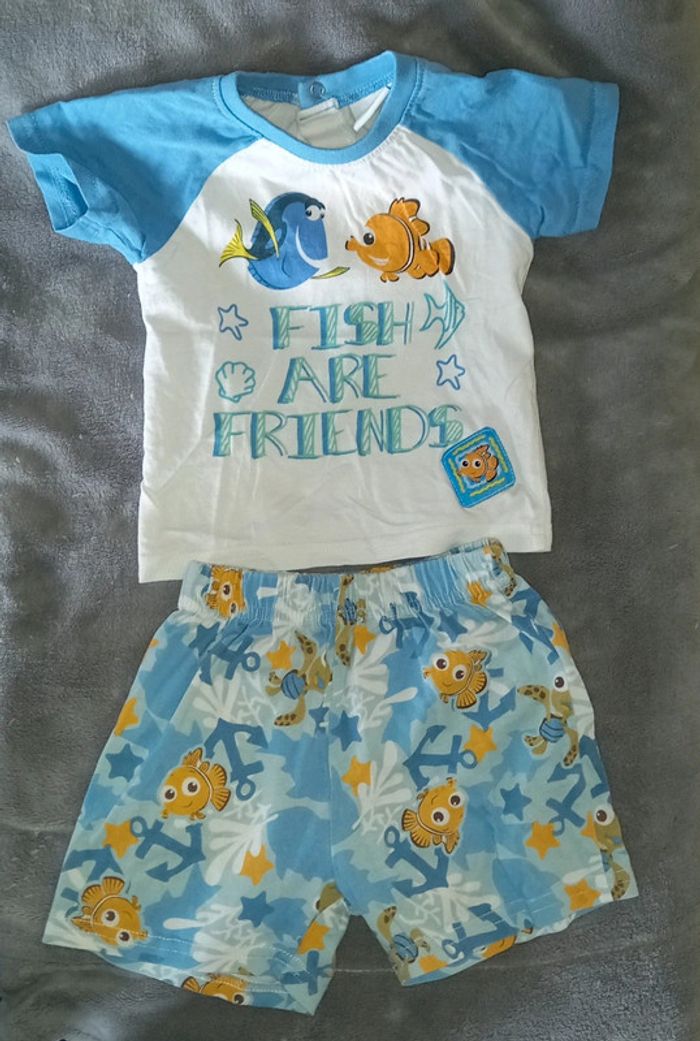 Taille 6 mois. Ensemble composé d'un t-shirt manches courtes et d'un short taille élastique.
