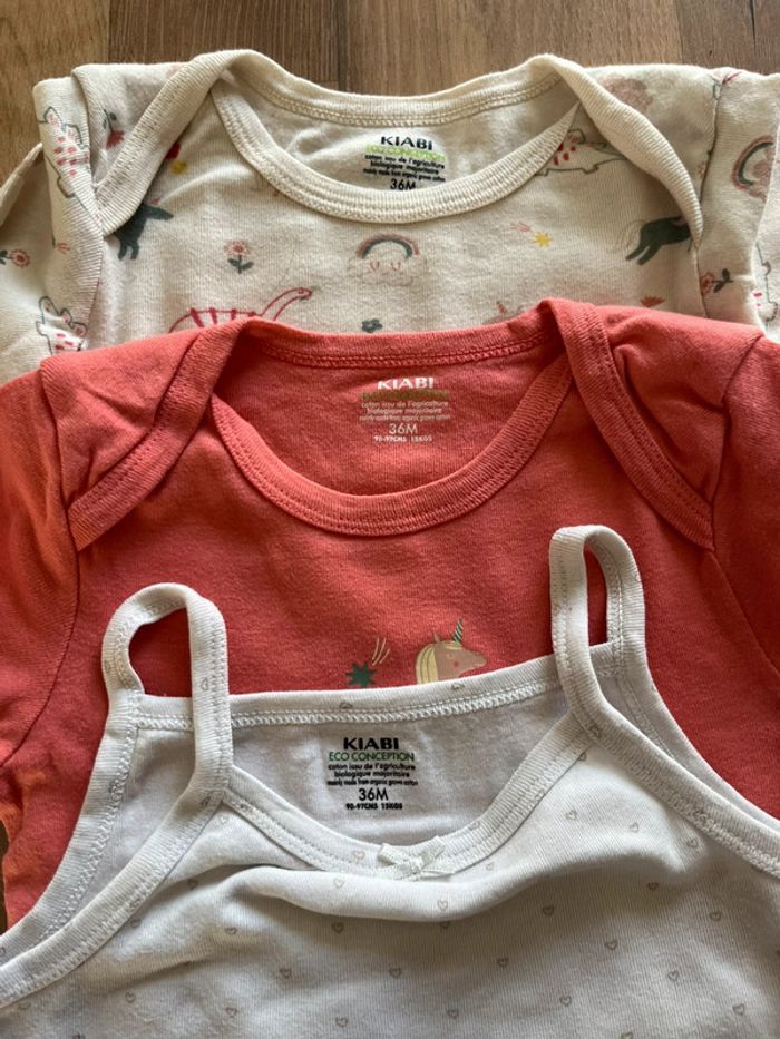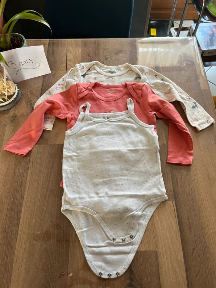 #juliie_62_3ans Lot de 3 bodies (2 manches longues - 1 bretelles) Marque Kiabi En très bon état