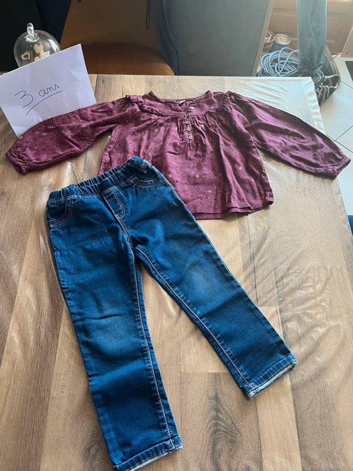 #juliie_62_3ans Ensemble composé : - d’un jean : marque obaibi - d’une blouse - marque tape à l’œil Taille 3 ans En très bon état
