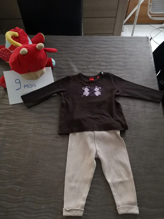 #juliie_62_9mois Ensemble composé d'un maillot manche longue marron et d'un legging rose Taille 9 mois Marque esprit / tape à l'œil En très bon état