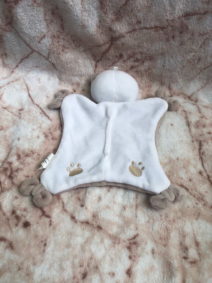 Doudou plat ours blanc beige marron emprunte pattes cocard Siplec - photo numéro 2