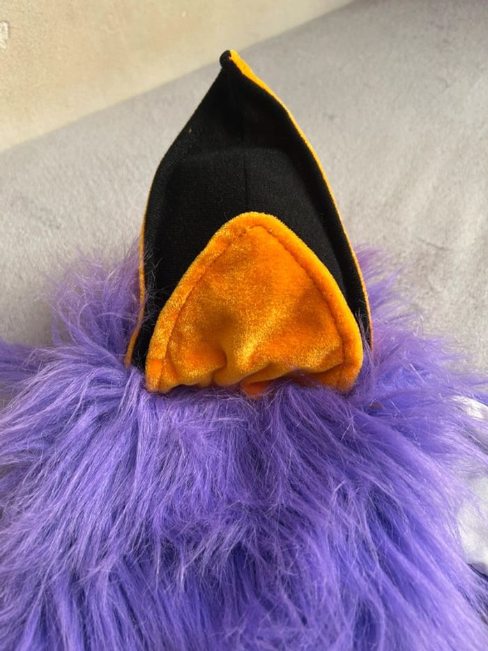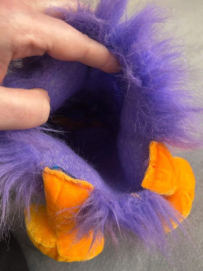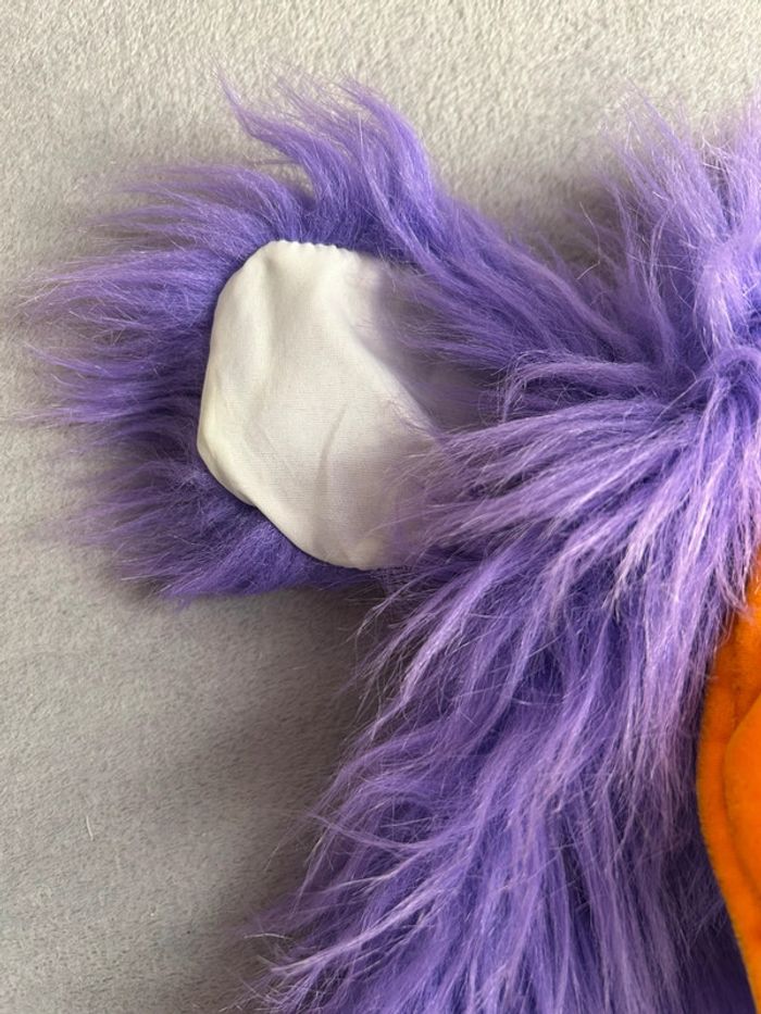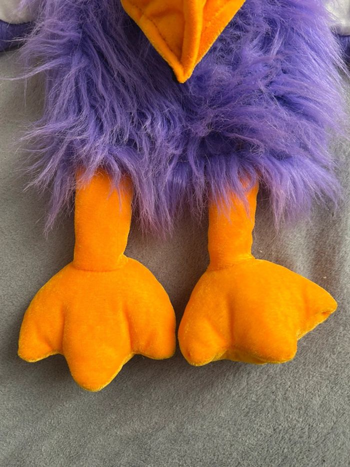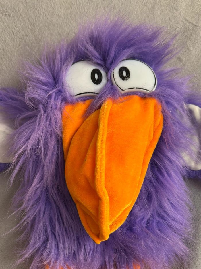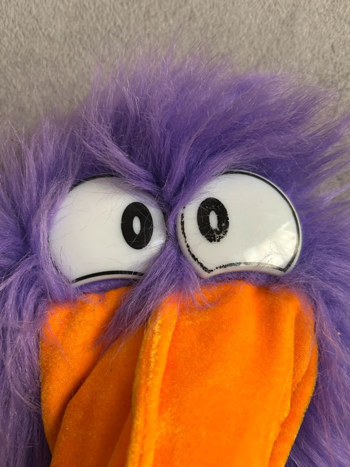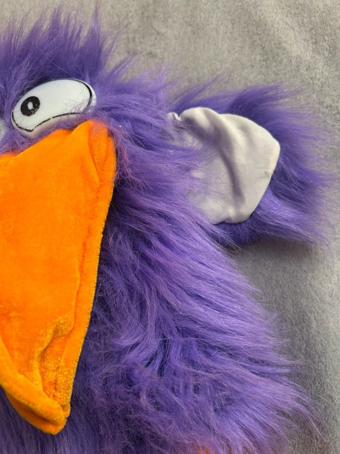 Ancienne Marionnette à main en peluche oiseau toucan purple avec klaxonne dans le bec - photo numéro 10