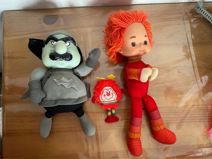 Lot de 3 poupées rainbow brite : - Romeo red sprite doll , - villain doll (grismine) et - red butler Année 1983 (vintage) Marque mattel Voir photos Envoi rapide et soigné