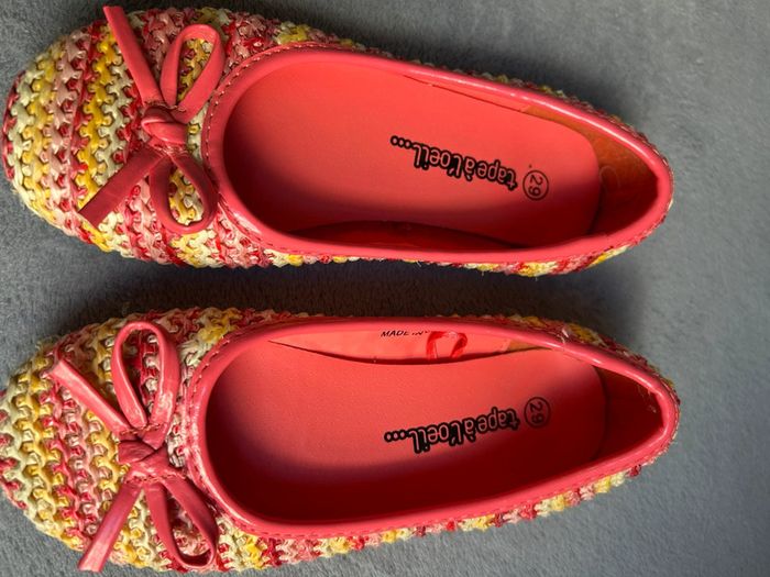 Paire de ballerine tape à l’œil  Couleur rose, jaune blanche Noeud décoratif rose  Taille 29 - photo numéro 1