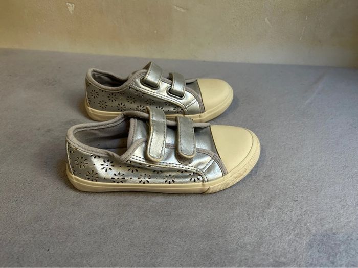 Paire de Chaussures basket de ville pour enfant Taille 28 À scratch  Couleur gris argenté et crème - photo numéro 1