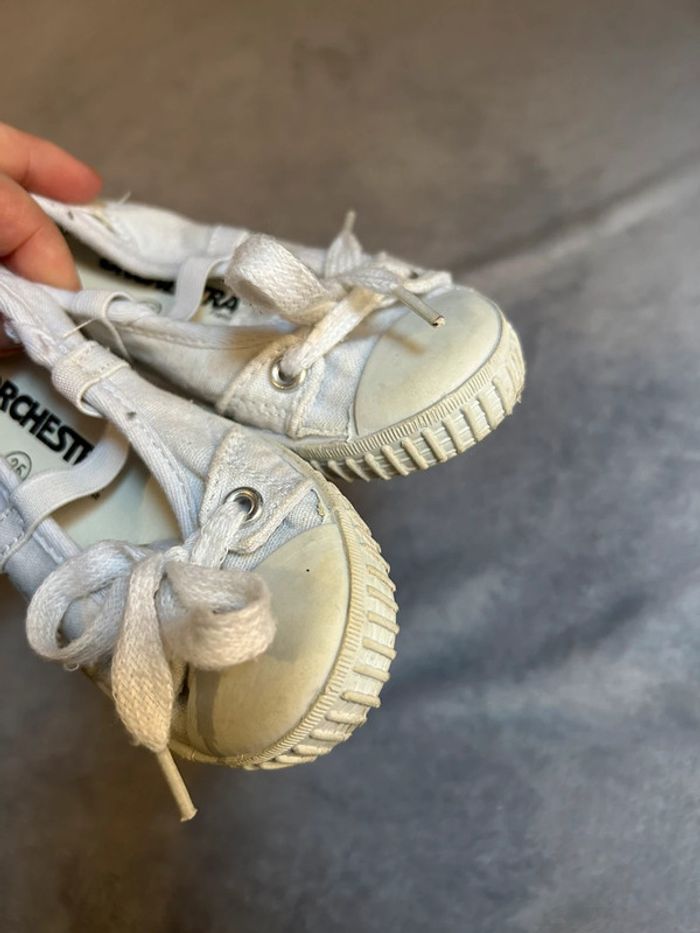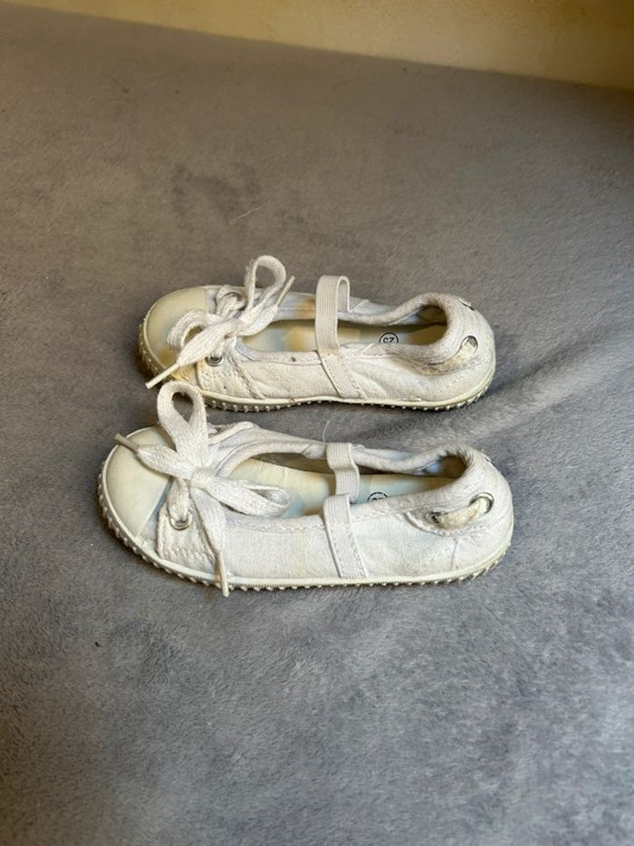 Chaussures été ballerine a élastique Couleur blanche Marque orchestra taille 25 Très bon état Juste un petit nettoyage à prévoir