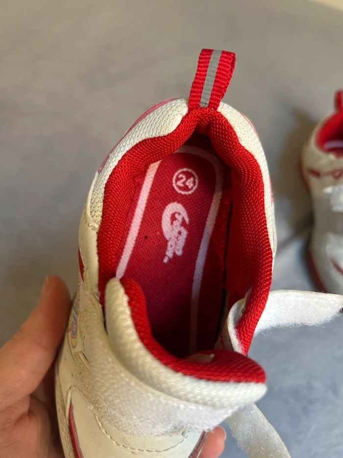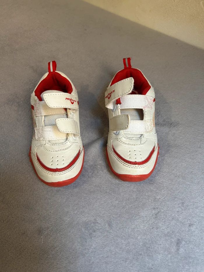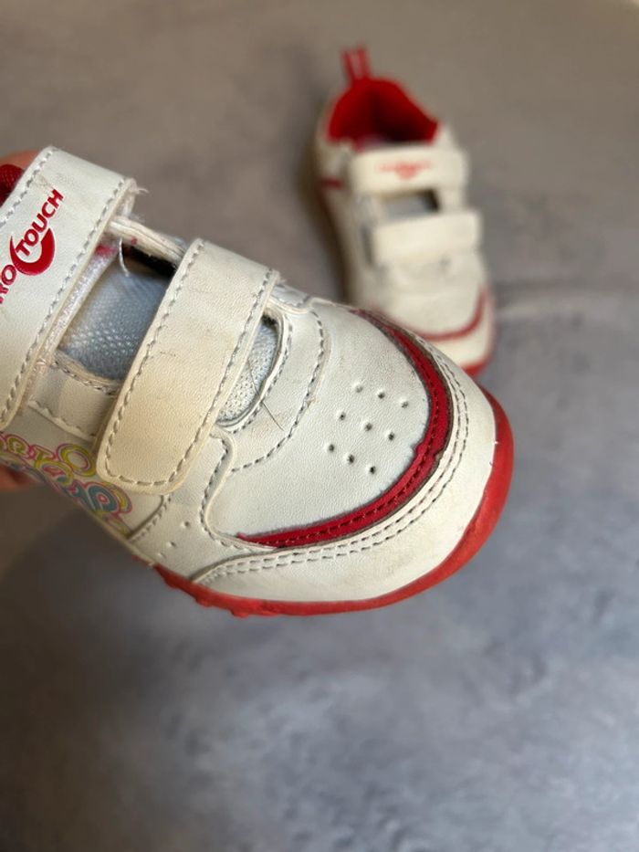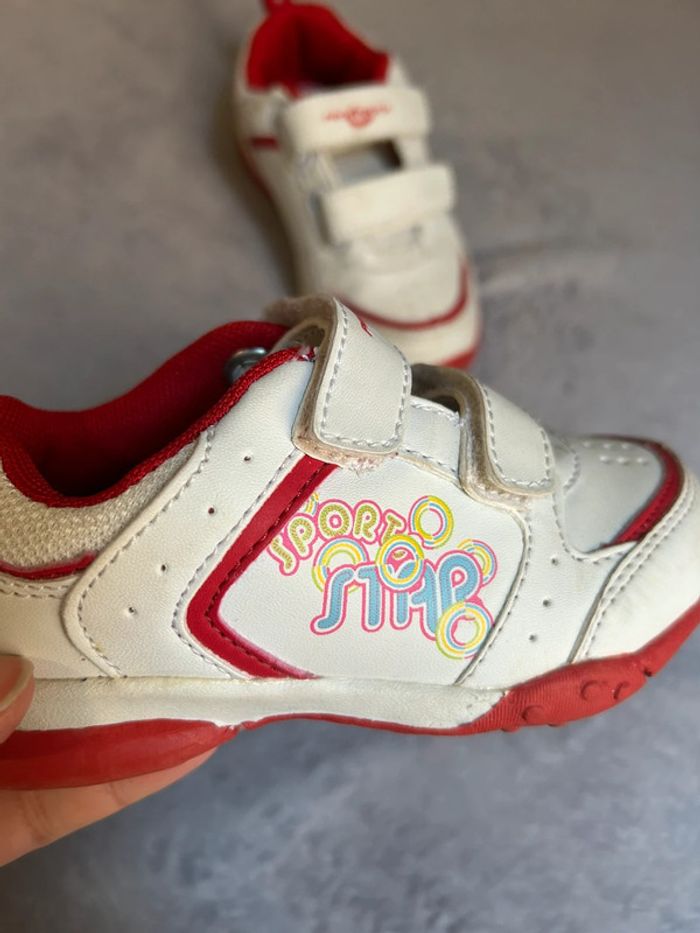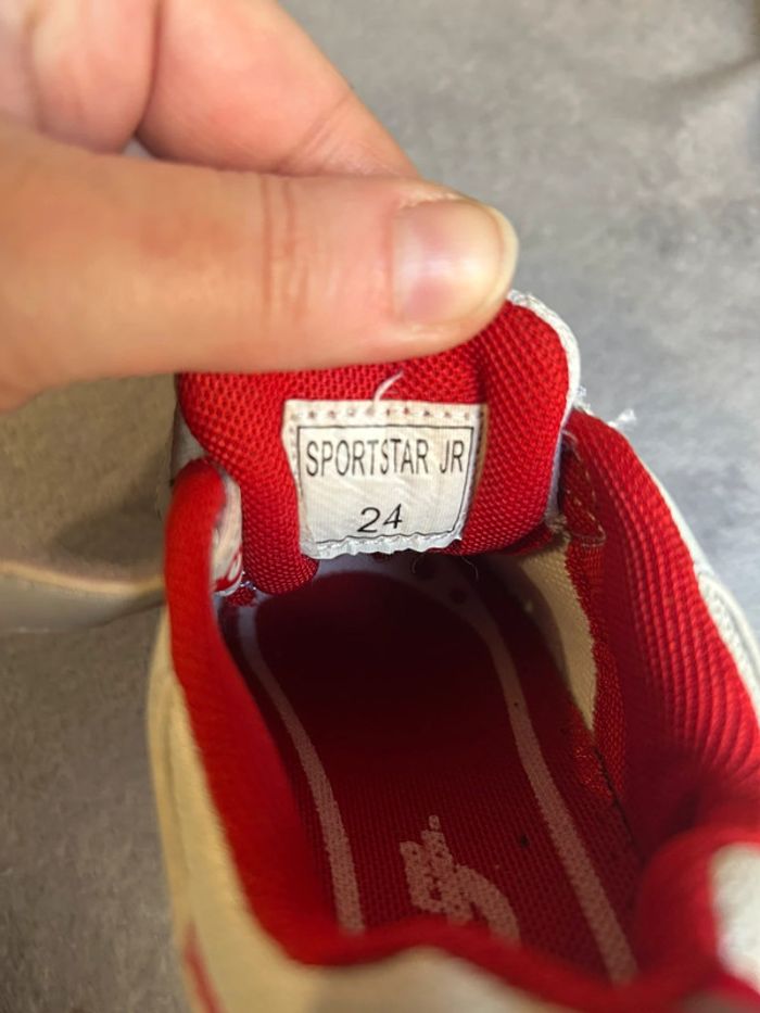 Chaussures pour enfant baskets Motif sport star Taille 24 Couleur blanc, rouge,.. Très bon état Peu portées Léger nettoyage des semelles à faire