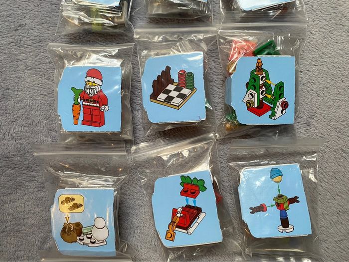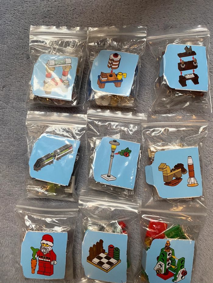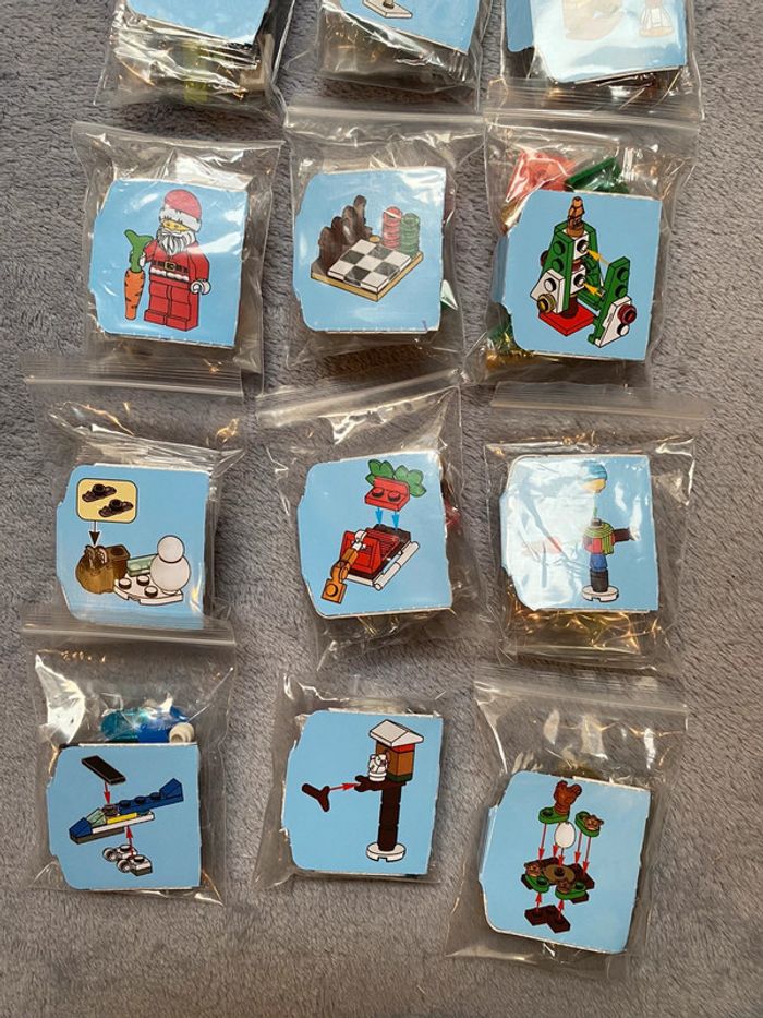Lot de 15 surprises lego city thème noël Elles sont toutes neuves encore sous sachet scellés. Mises individuellement sous sachet zip avec leurs notices Envoi rapide et soigné