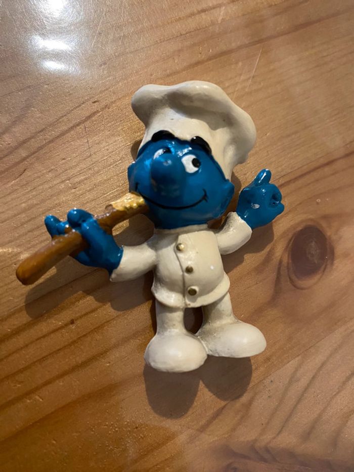 Figurine avec attache schtroumpfs cuisinier schleich wallage berries 1983 Très bon état Envoi rapide et soigné