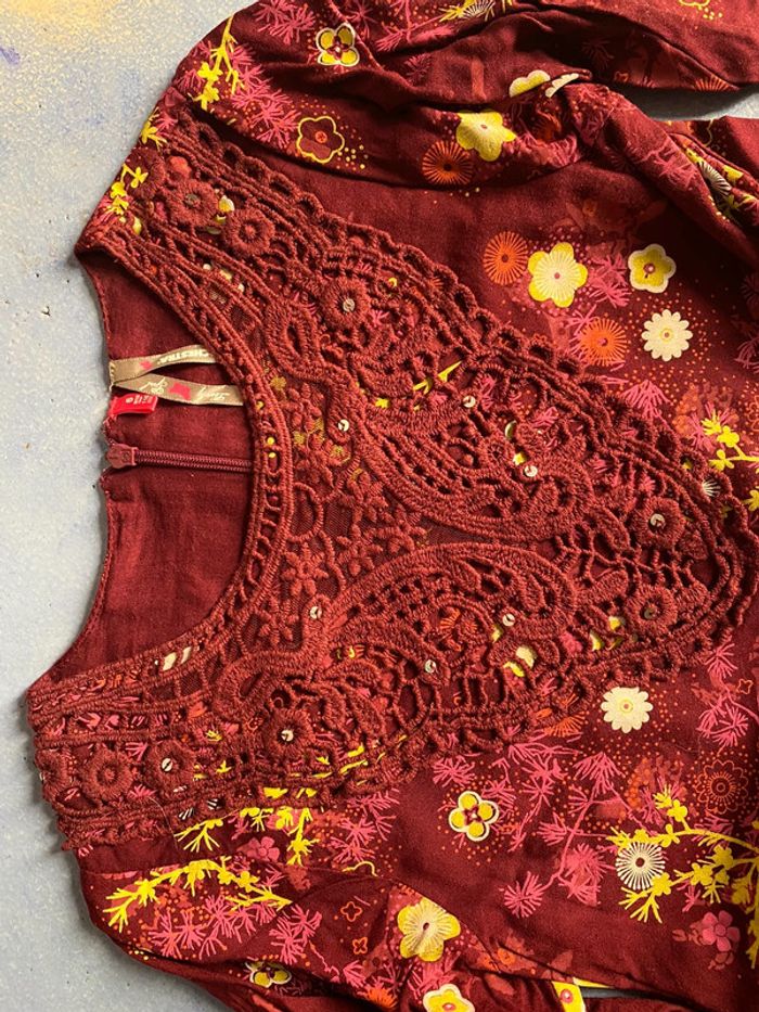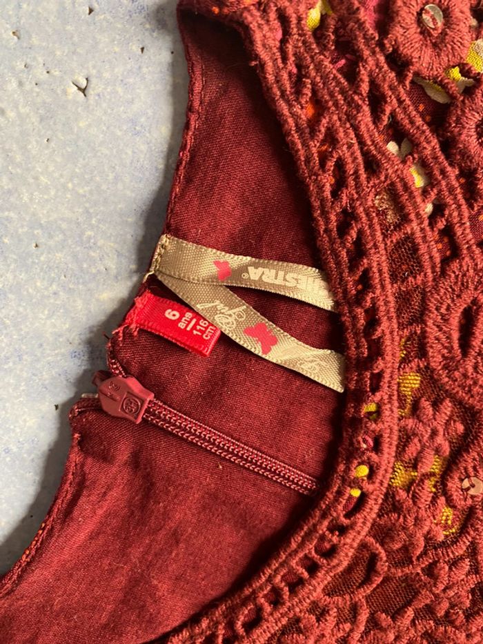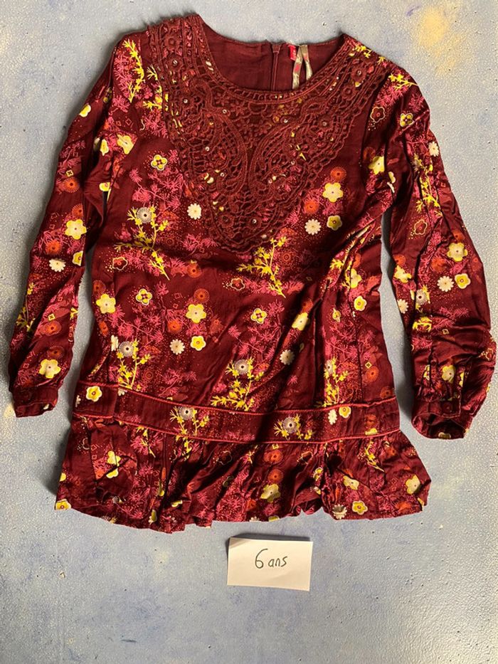 Tunique fille Taille 6 ans Marque orchestra Couleur bordeau motif fleur Comme neuf Envoi rapide et soigné