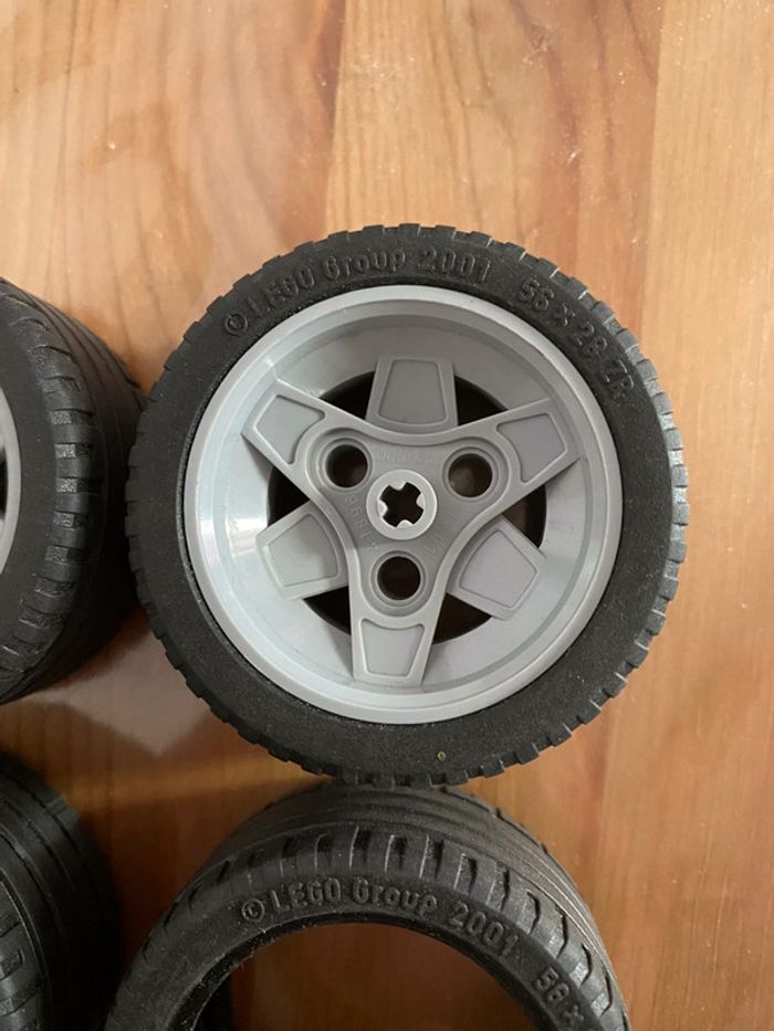 Lot de 4 pneus + 3 gentes Lego 3x Wheel 43.2mm D. x 26mm grises claires 4x Black Tire 56 x 28 ZR noires Parfait état Envoi rapide et soigné