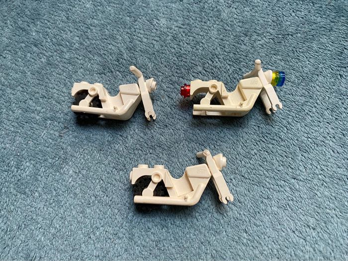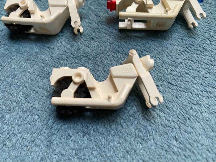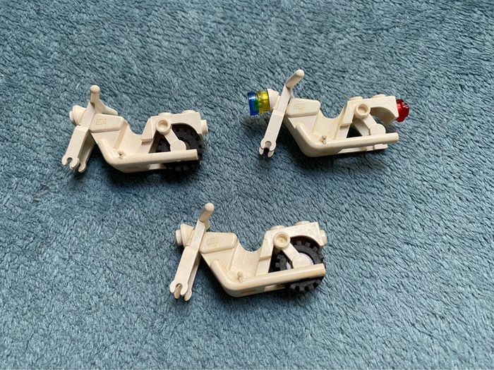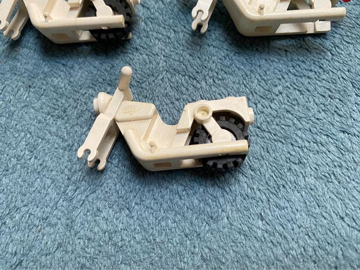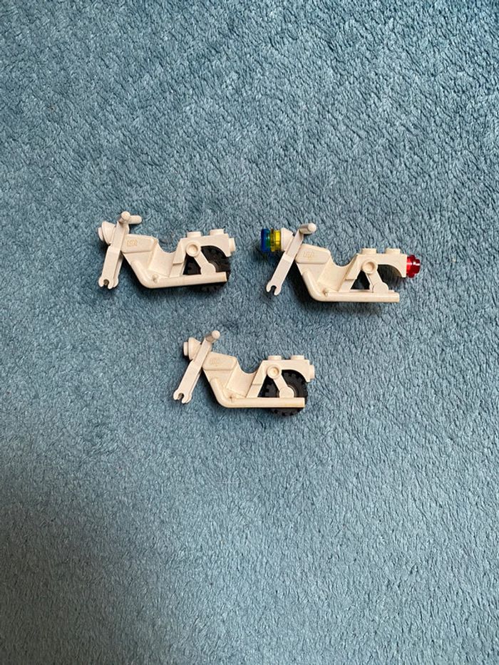 Lot de 3 moto lego Motorcycle Town with Trans-Clear Wheels with Black Tires x81 / 3464c02 ⚠️ elles ne sont pas complètes (roue..), vous recevez les 3 en photo. ⚠️ une à La fourche de pliée ⚠️ un guidon de cassé sur une des motos Tout est en photo Envoi rapide et soigné
