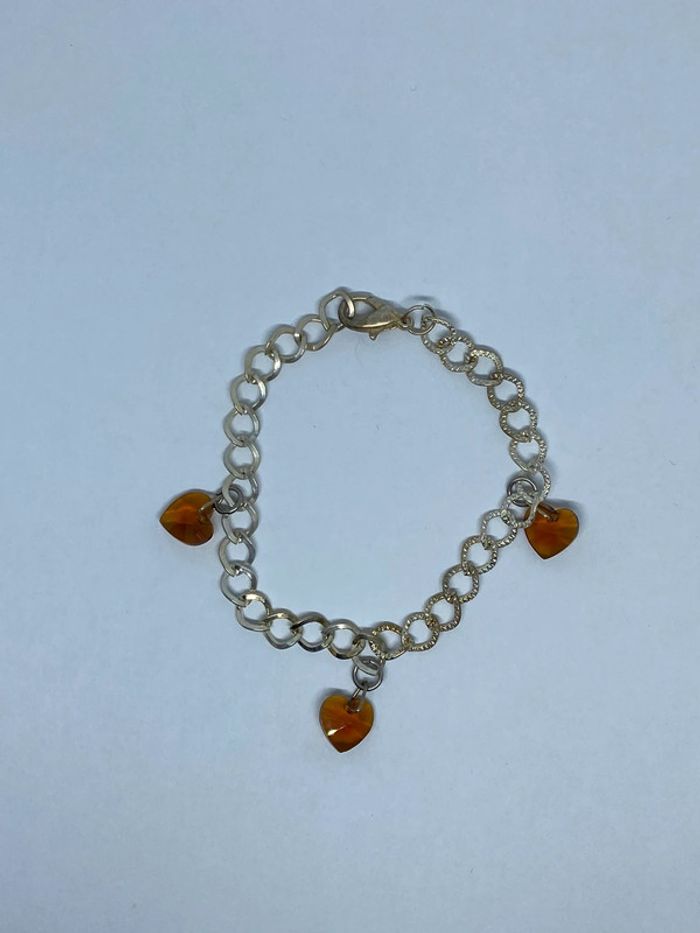 Bracelet fantaisie avec 3 coeurs orange foncé