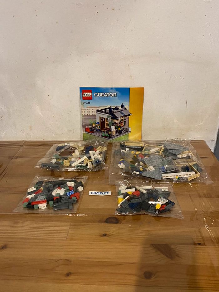 Lego 31036 creator 3 in 1 Le magasin de jouet et l’épicerie Toutes les pièces et figurines sont neuves et encore en sachets fermés Je n’ai plus la boîte, ni 2 des notices Vous recevez donc : - 1 notice Et - tous les sachets fermés Les 2 notices manquantes sont consultables gratuitement sur le site lego Envoi rapide et soigné