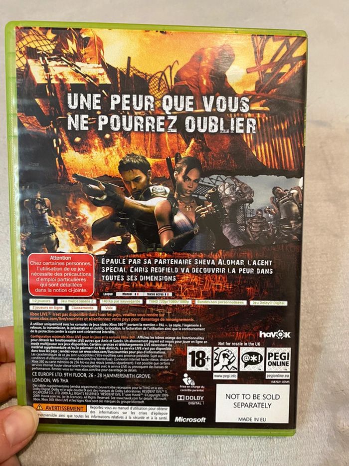 Jeu vidéo xbox 360 résident evil Boitier, livret en parfait état Cd de très légères micro rayures Envoi rapide et soigné