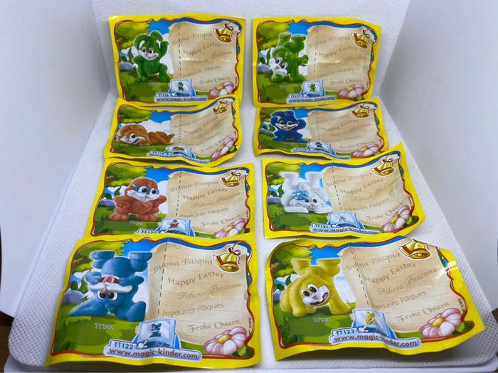 Série complete des 8 lapins de Pâques kinder surprise 2007 et leur papier Les lapins sont encore dans leur emballage Envoi rapide et soigné