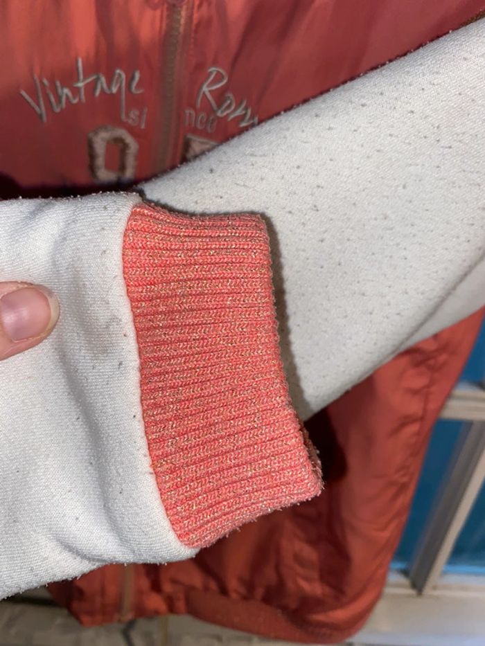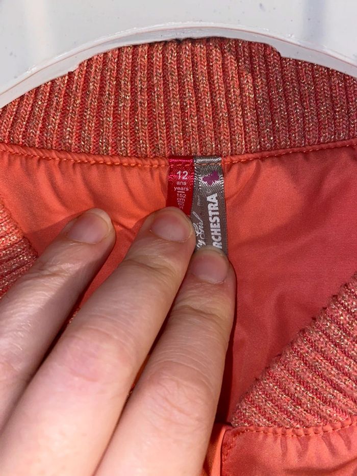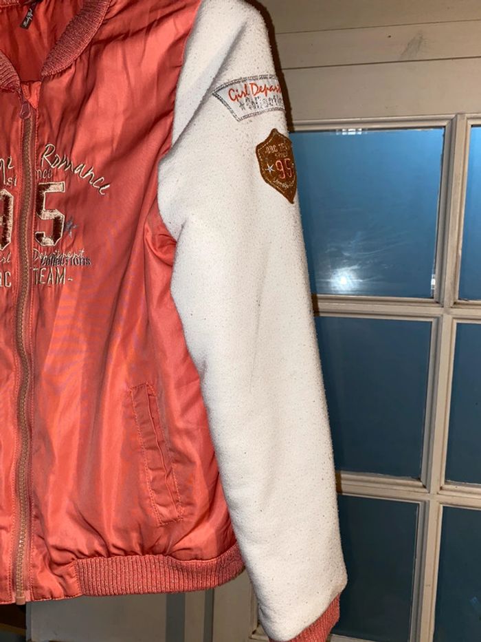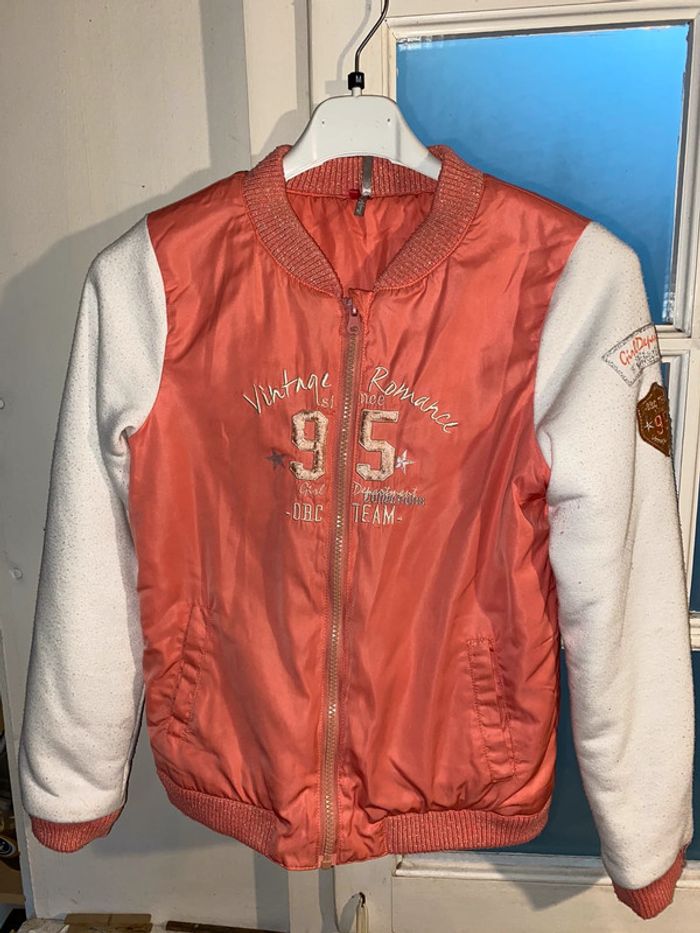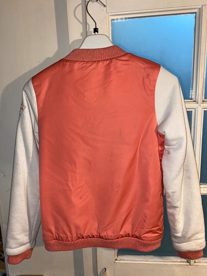 Jolie veste blaser Marque orchestra Taille 12 ans Couleur rose/pêche et blanc Intérieur doublé molletonné blanc Juste les manches avec bouloches (voir photos) Sinon impeccable Pas de trous, ni de tâches. Prix d’achat 25€
