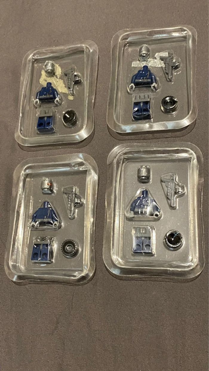 Lot de 4 Minifigurines the lego movie elles sont neuves encore dans leurs blisters Les blisters ne sont pas en super état , voir photos Mais les figurines sont impeccables et neuves ref tlm045 Robo Swat Knit Cap x4 envoi rapide et soigné