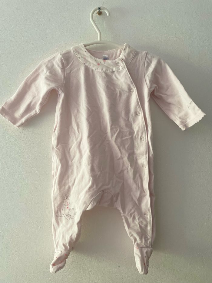 Pyjama léger rose clair avec motifs étoilée sur le col et aux pieds. Petits dessin et inscription sur une manche voir détails photo 3 mois - 60 cm P’tit bisous