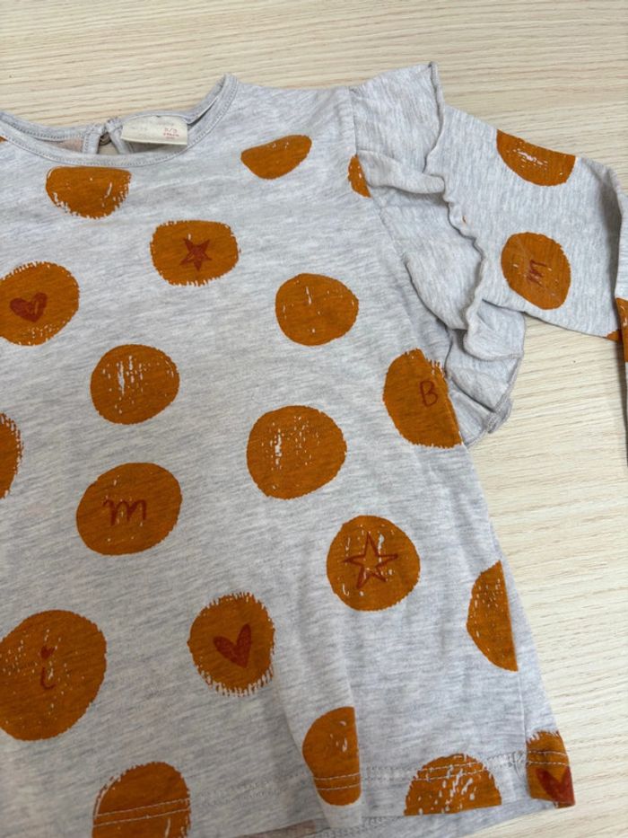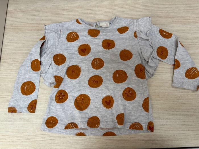 T-shirt manches longues Zara à volant Gris avec rond pois orange taille 2-3 ans