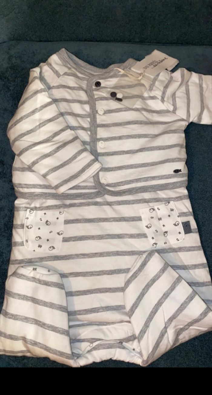 Pyjama chaud 1 pièce et gilet  neuf 2 en 1 dpam 6 mois - photo numéro 2