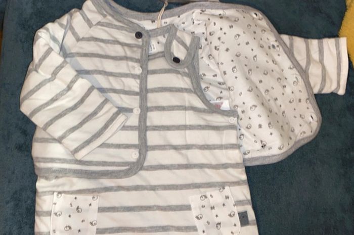 Pyjama chaud 1 pièce et gilet  neuf 2 en 1 dpam 6 mois - photo numéro 4