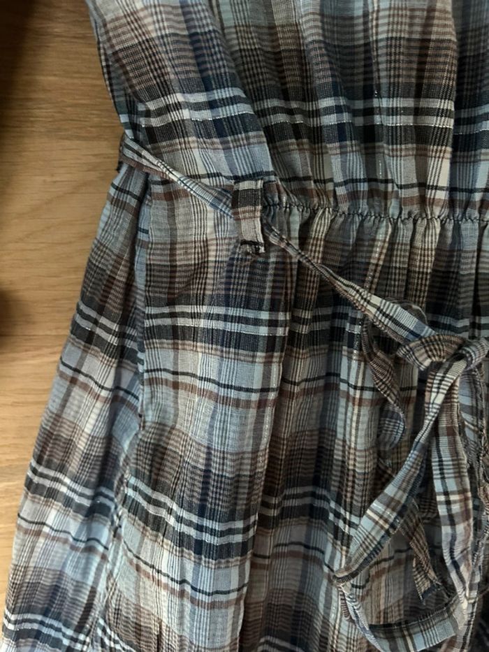 Très beau chemisier légèrement irisé Cintré et avec lien à la taille Manches 3/4 Fermeture bouton à l’avant Très peu porté En parfait état Autres articles dans mon dressing (5)