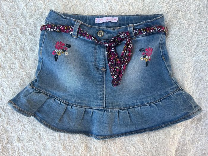 Jupe jean parfait état motif fleur 3 ans - photo numéro 1