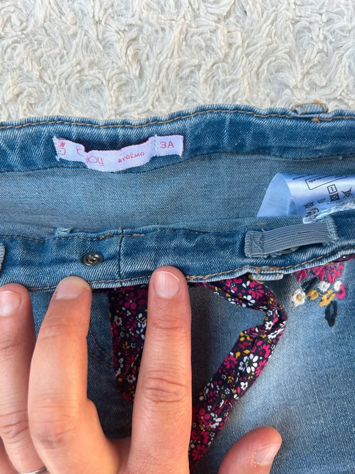 Jupe jean parfait état motif fleur 3 ans - photo numéro 5
