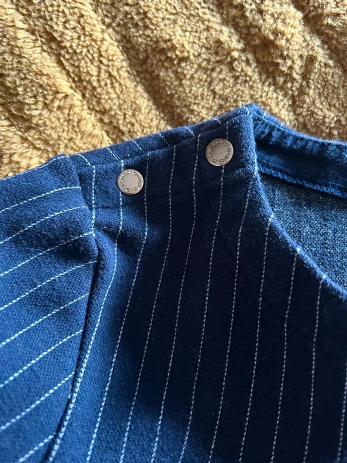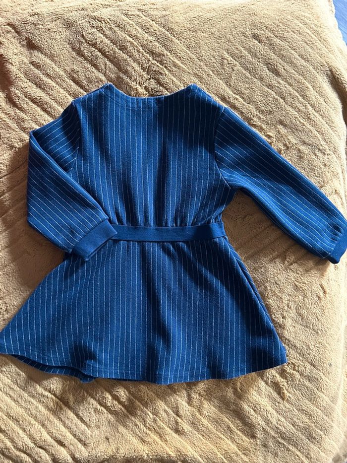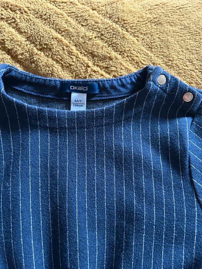 Robe okaidi bleue à fines rayures blanches Fermeture par 2 boutons pressions dorés sur l’encolure Ceintree à la taille En très bon état Autres articles dans mon dressing (3)