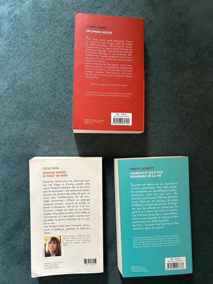 Lot de 3 livres : - secondes noces - demain matin si tout va bien - Laurette et les p’tits bonheurs de la vie Qq imperfections sur la couverture mais pages en très bon état Autres articles dans mon dressing