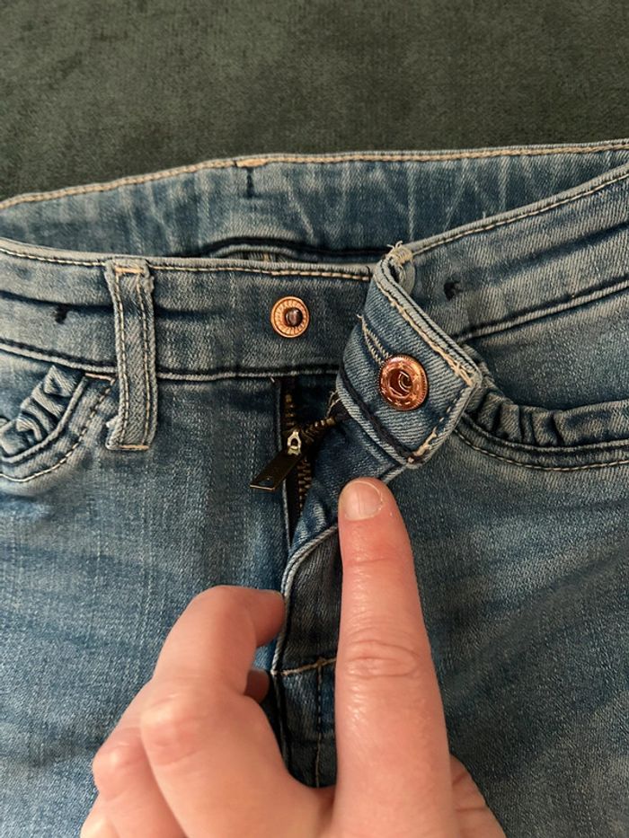 Jean en parfait état (porté 1 fois) Effet délavé Fausses poches devant 2 poches arrière Réglable à la taille et fermeture par pression Taille 3/4 ans 104cm Autres articles dans mon dressing (2)