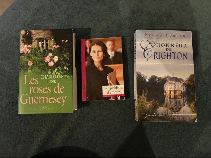 Livre« une plaidoirie d’amour » :Neuf jamais lu Les roses de Guernesey : très bon état (angle arrière légèrement abîmé) L’honneur des crighton : très bon état (couverture légèrement abîmée) Autres articles dans mon dressing