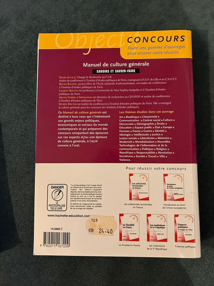 2 manuels de « réflexion » « Magistrat / commissaire de police » édition 2003 « Manuel de culture générale » édition 2004 En très bon état hormis des passages surlignes (pas de pages cornées ou arrachées) Autres articles dans mon dressing