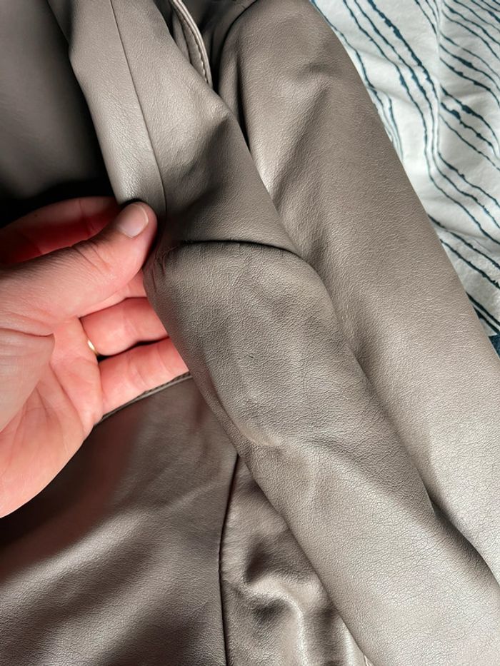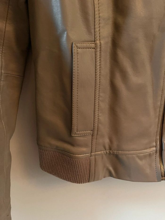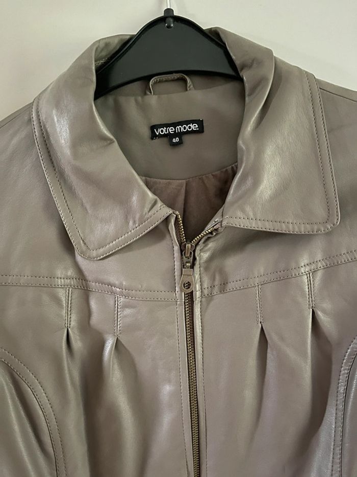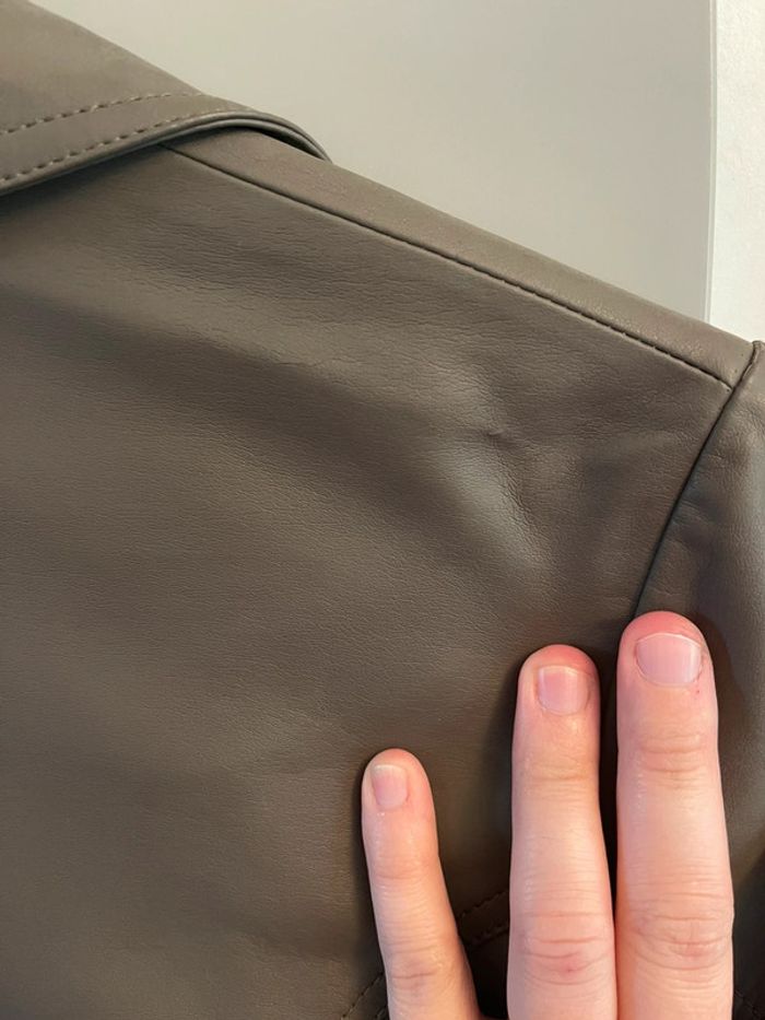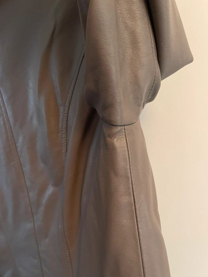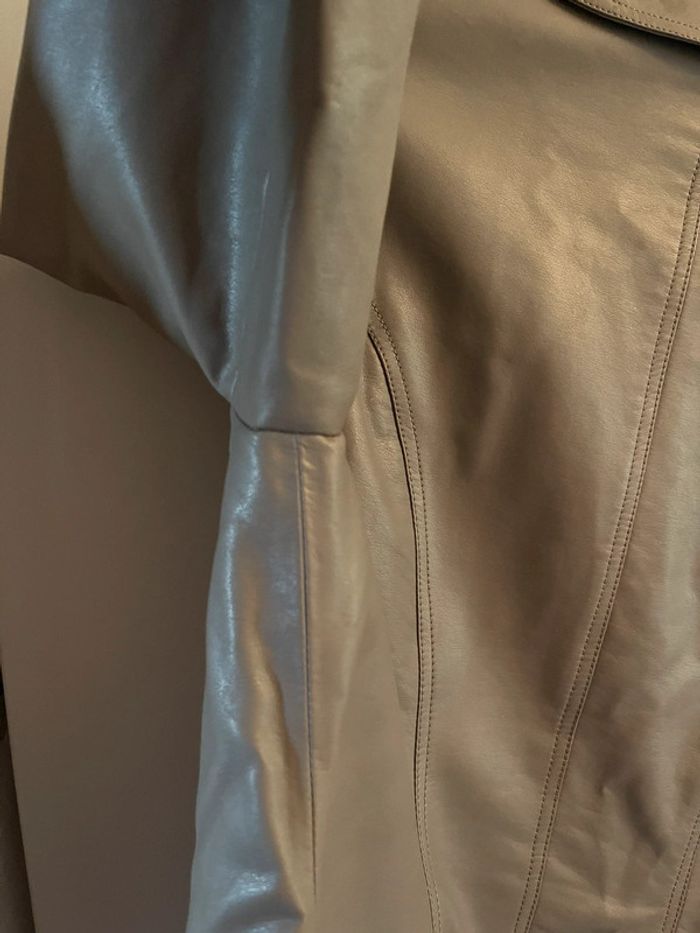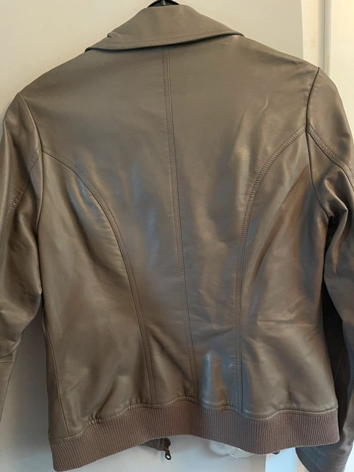 Très jolie veste style perfecto Peu portée 2 poches Qq traces d’usure (voir dernières photos après les mesures) Couleur marron glacé