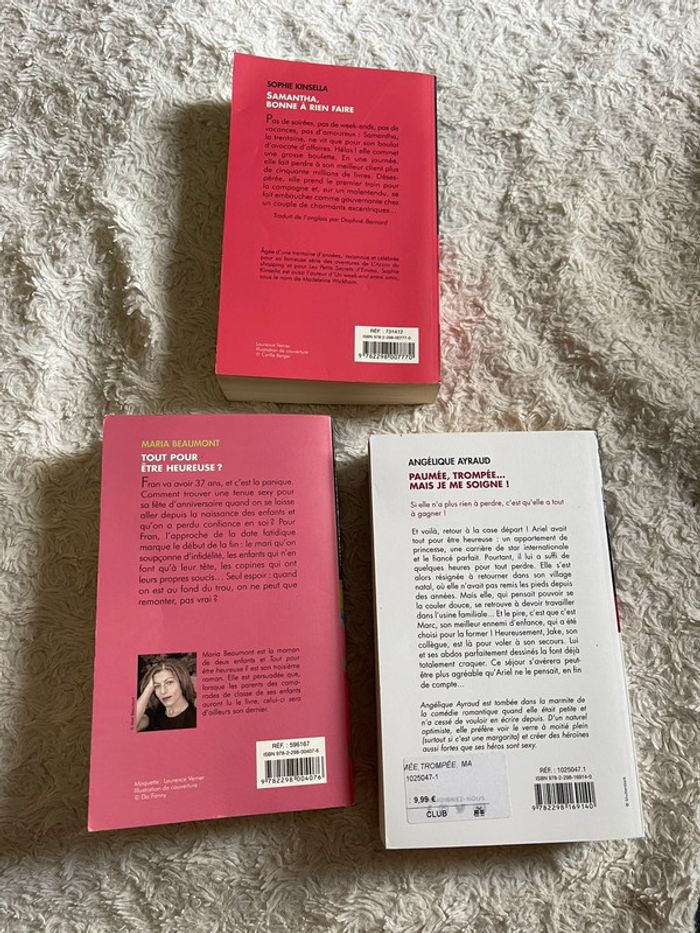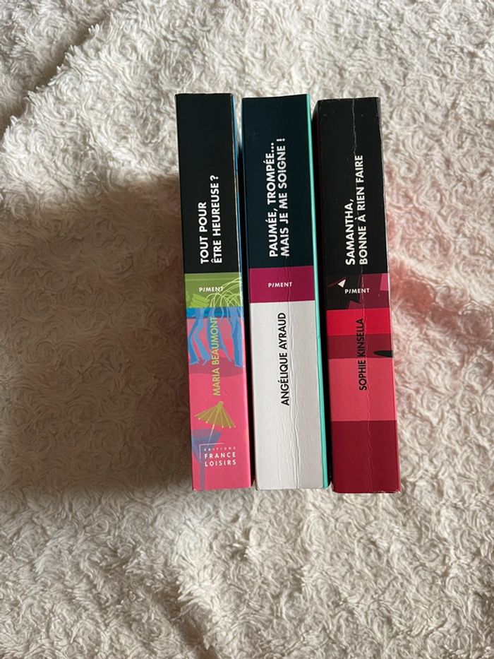 Lot 3 livres piment Samantha bonne à rien faire (Sophie kinsella) Paumée trompée mais je me soigne (angélique ayraud) Tout pour être heureuse (Maria Beaumont) Bon état général (pas de pages déchirées ni cornées)