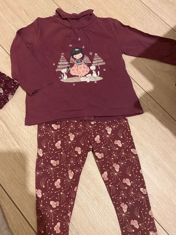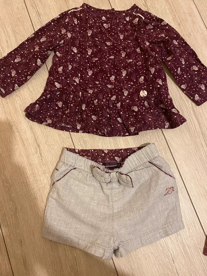 lot comprenant 1 short 1 tee shirt col roulé 1 blouse 1 legging sur le même thème ´ très bon état