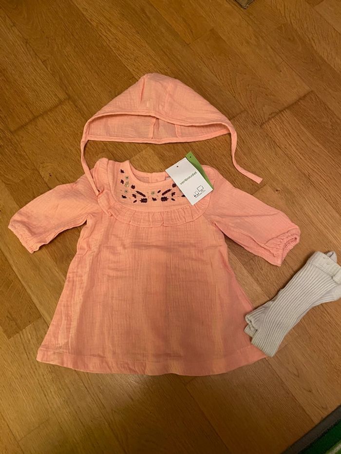 Ensemble robe bonnet collant vertbaudet 9 mois
