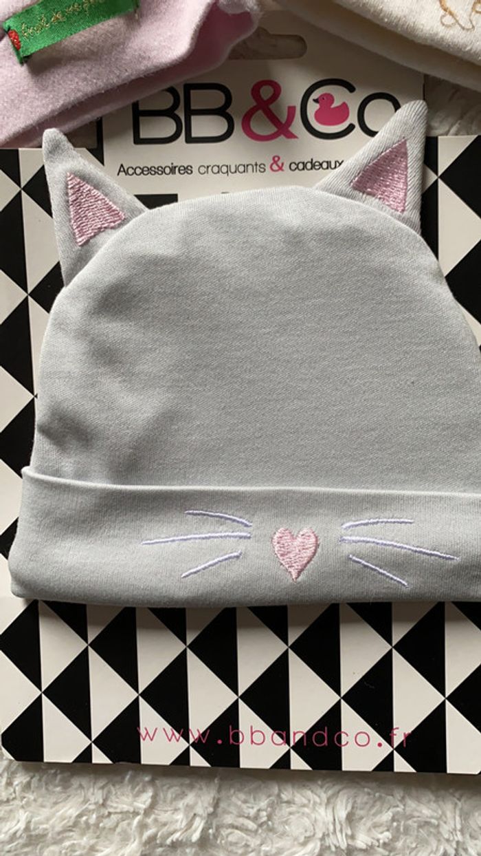 3 bonnets bébé neufs jamais portés 1 bbandco (10,90€ neuf) avec étiquette 1 fruit de ma passion sans étiquette 1 je ne sais plus sans étiquette