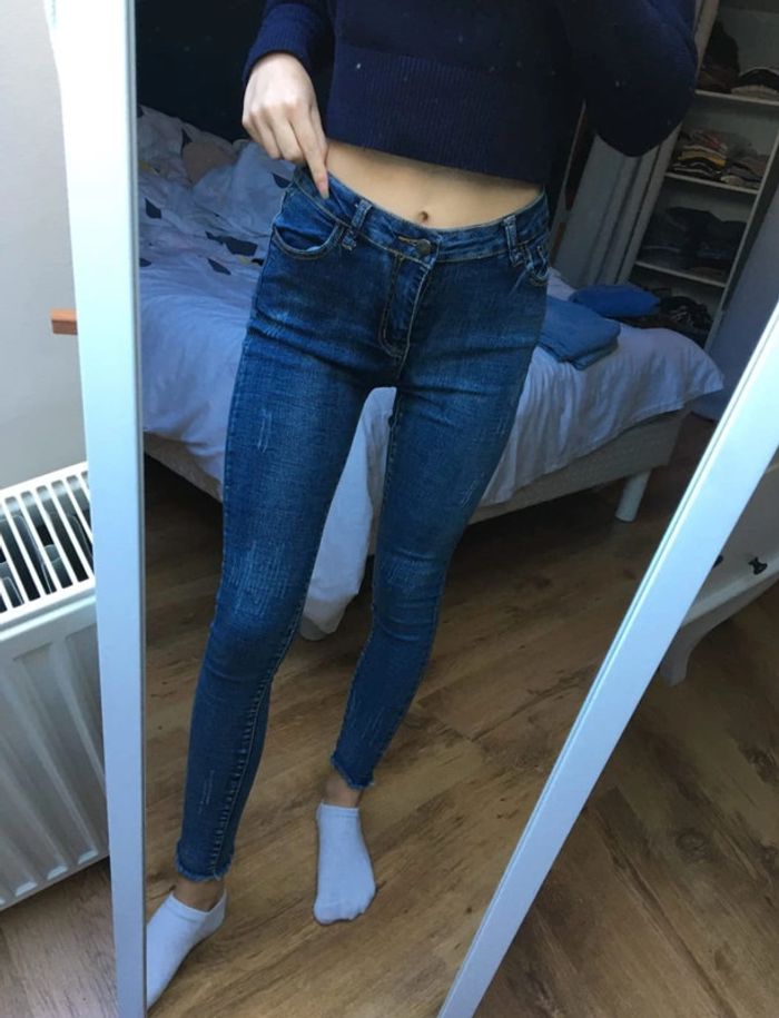 jeans skinny bleue foncé neuf femme taille basse - photo numéro 1